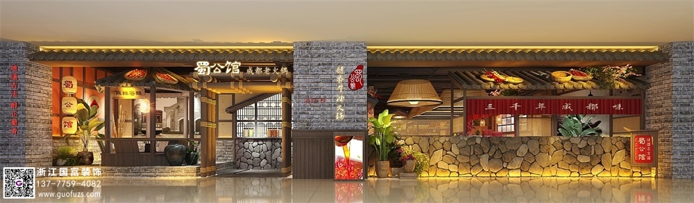 川式老火鍋店裝修設(shè)計(jì)案例效果圖