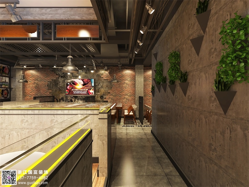 工業(yè)風(fēng)某某烤肉店裝修設(shè)計(jì)案例效果圖
